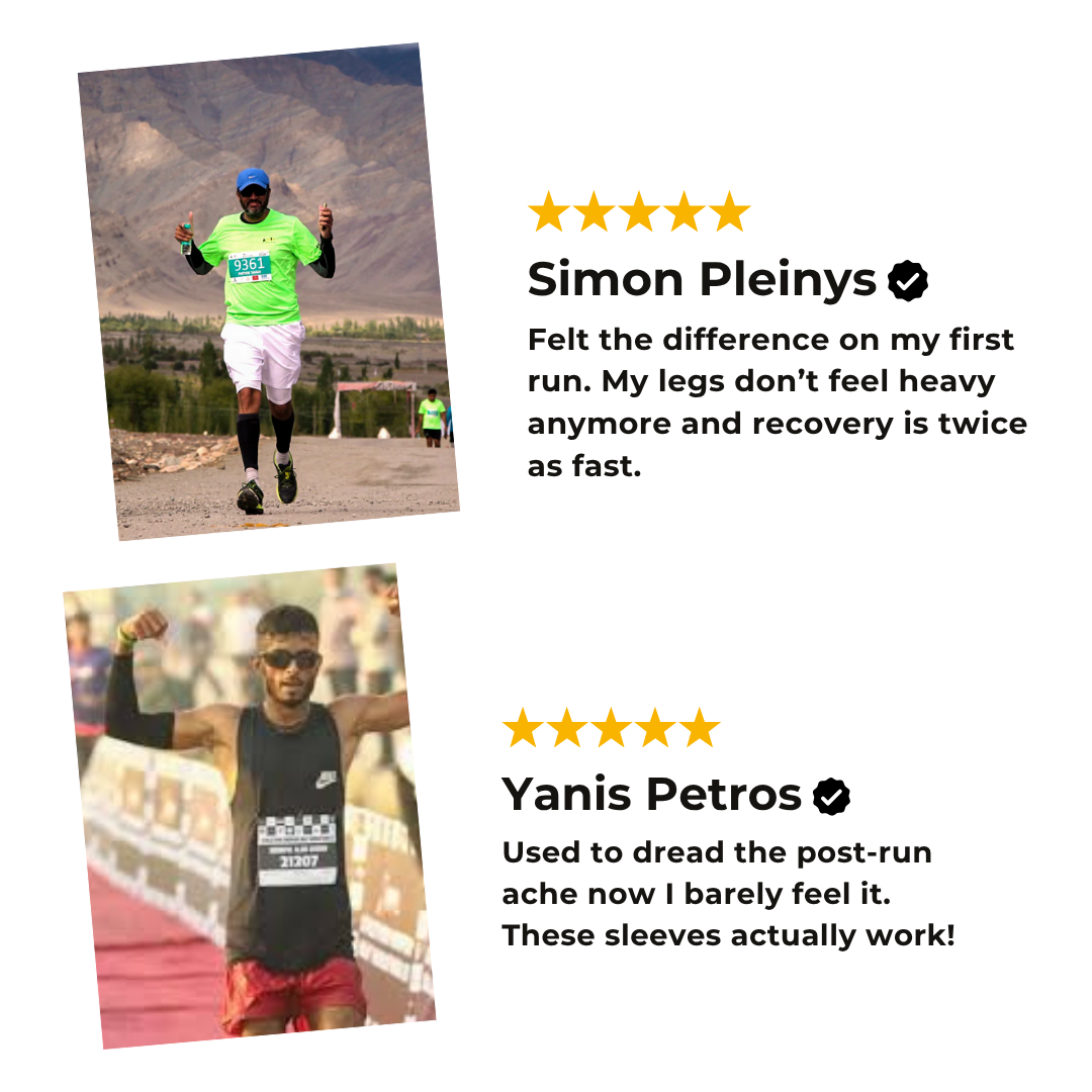 "Used to dread the post-run ache now I barely feel it. These sleeves actually work!"